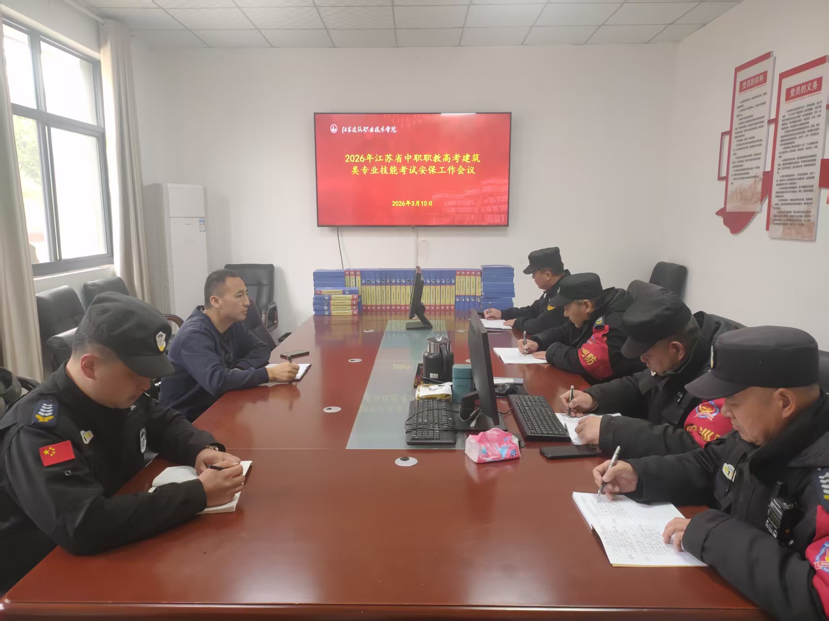 2026年3月13-15日,2026年江苏省中职职教高考建筑类专业技能考试在我校泉山校区顺利举行。保卫处提前召开岗前工作会议,周密部署,全体人员考试当日凌晨5:30全员到岗,以严谨作风和高效服务圆满完成安保任务。