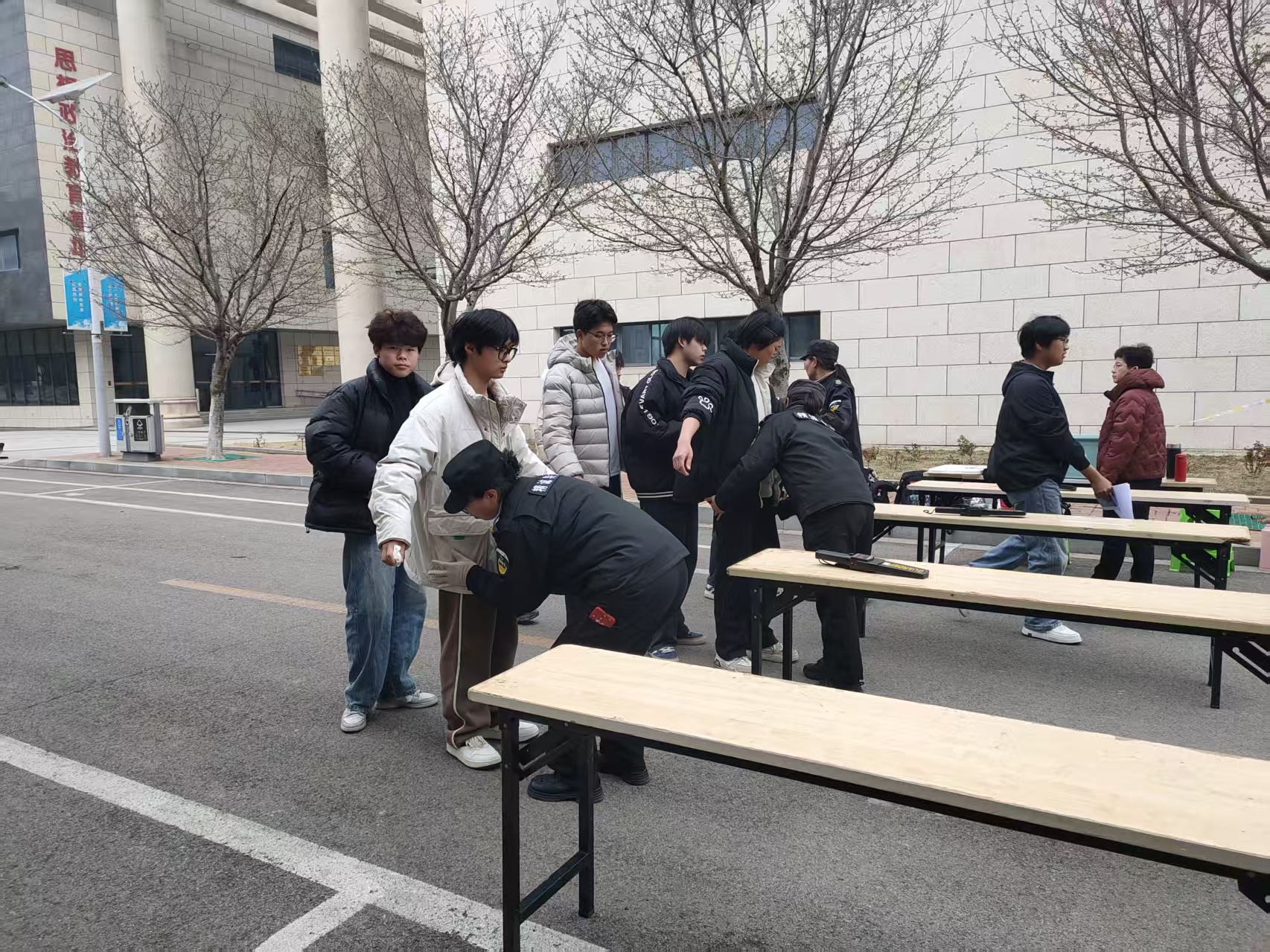 接到任务后,保卫处召开专题会议,制定详尽的安保方案和应急预案,细化交通疏导、安检流程、巡逻路线等各环节任务分工,确保责任到人。考试前一天,警戒线等安保设施已全部布设到位,考场周边完成最后一轮巡查,为考试做好充分准备。