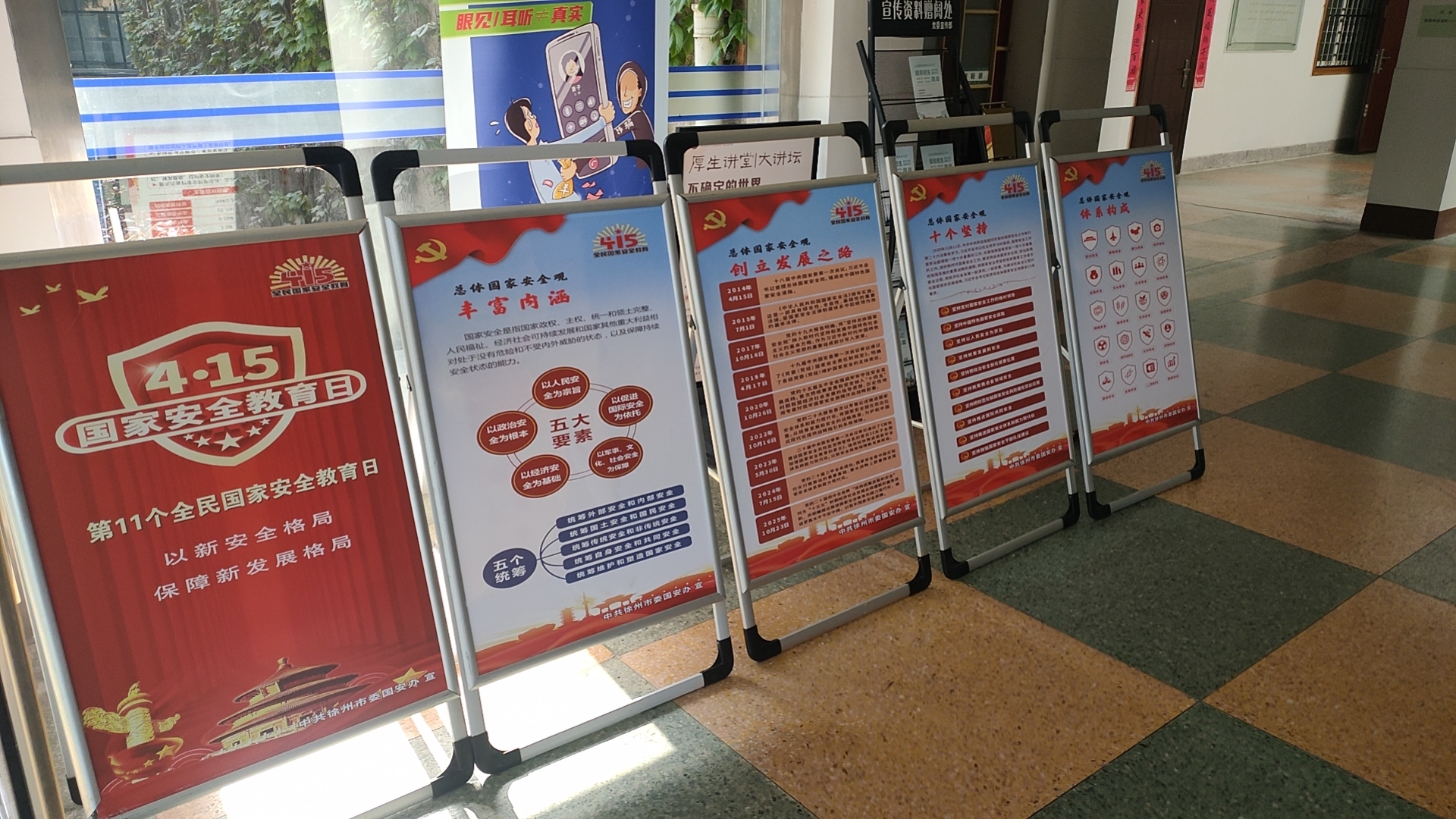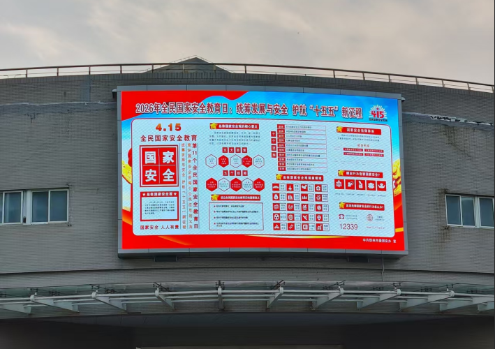 线下宣传方面,保卫处在校园主干道、教学楼、行政楼等区域设置国家安全主题展板,悬挂“统筹发展和安全 护航‘十五五’新征程”“国家安全 人人有责”等宣传条幅,同时利用校园内多处LED电子显示屏滚动播放国家安全宣传标语,营造浓厚的视觉宣传氛围,让师生在日常学习生活中潜移默化地接受国家安全教育。